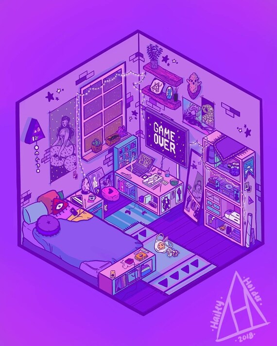 Game Over Isometric Drawing Mini Poster Etsy