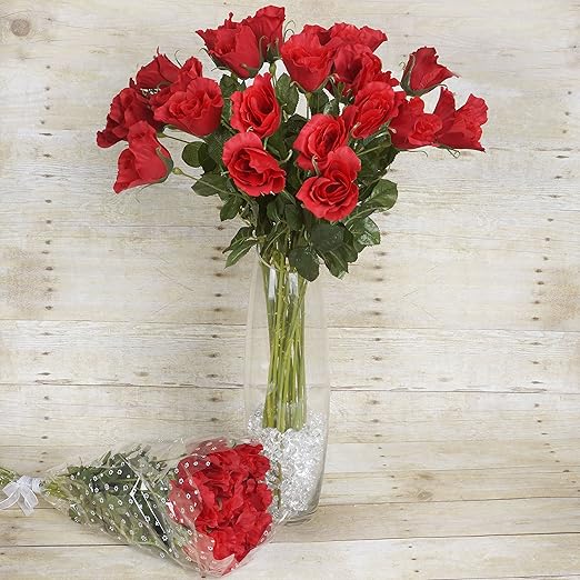 Amazon Com Balsacircle 48 Red Long Single Stem Roses 4 Bundles