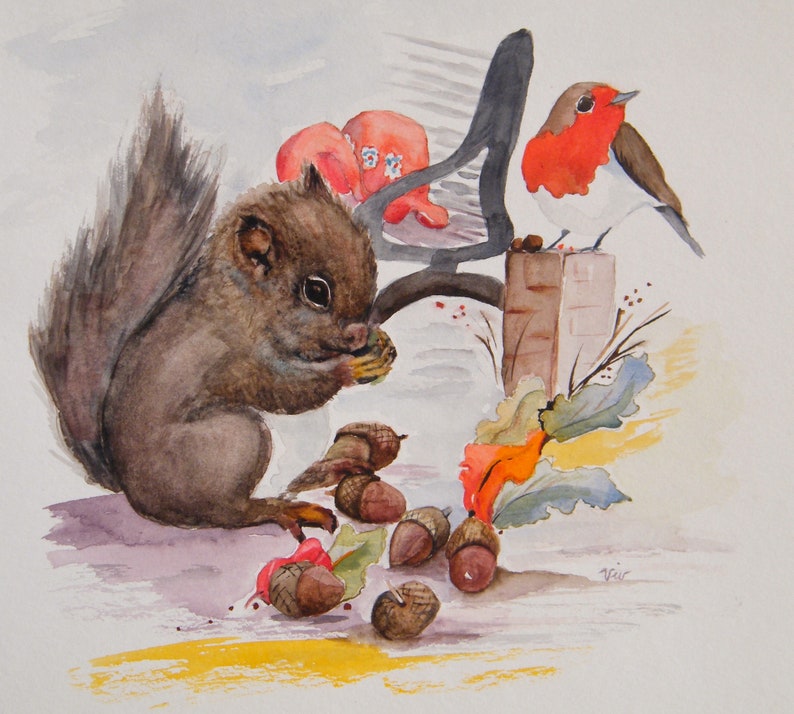 Elephant Shrew And Squirrel With A Robin 2 Nursery Etsy